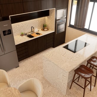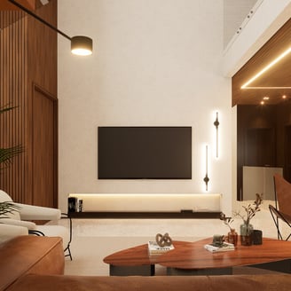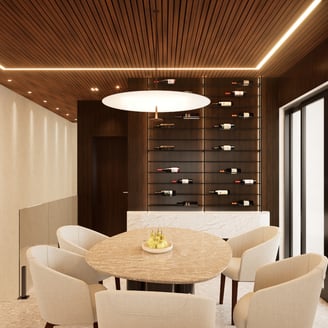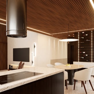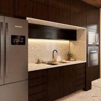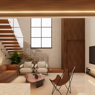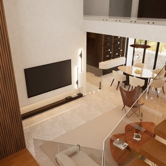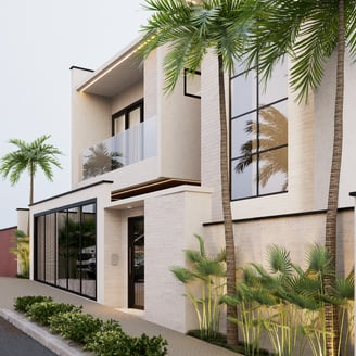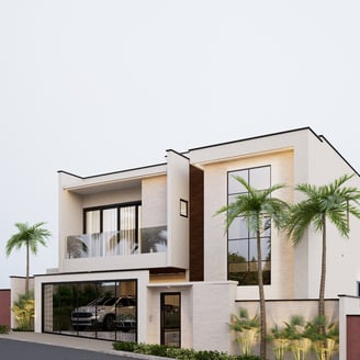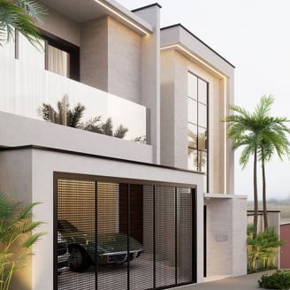 Casa elegante implantada em um terreno em declive. Reaproveitar o volume de terra cortado dentro do próprio terreno para acomodar o sub-solo foi uma das premissas para esse projeto, reduzindo custos desnecessários com bota-fora e ampliando a área útil no sub-solo, que conta com a área gourmet, lavabo, área de serviço, canil e área externa.