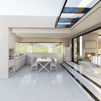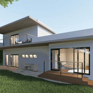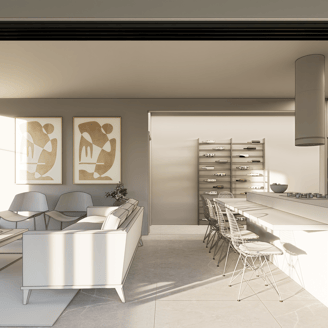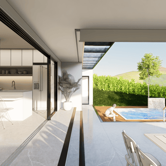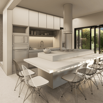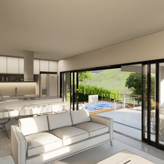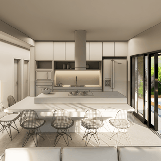 Neste projeto, área social e área íntima se integram ao entorno e ao terreno por meio de generosas aberturas. Resultando em uma residência arejada, luminosa e confortável.